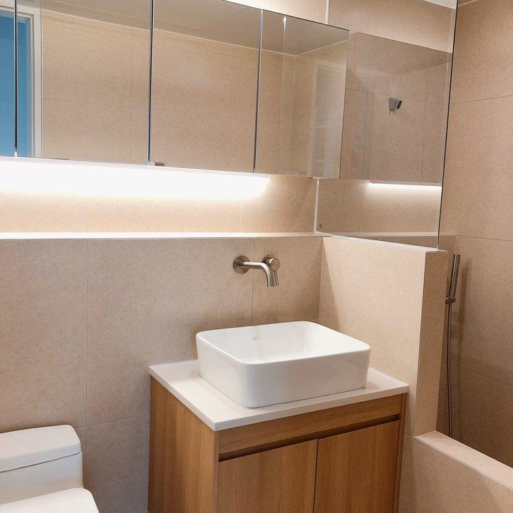 그리고 거실 메인 욕실에는 기존 욕조를 철거하고 조적 욕조를 시공했어요.