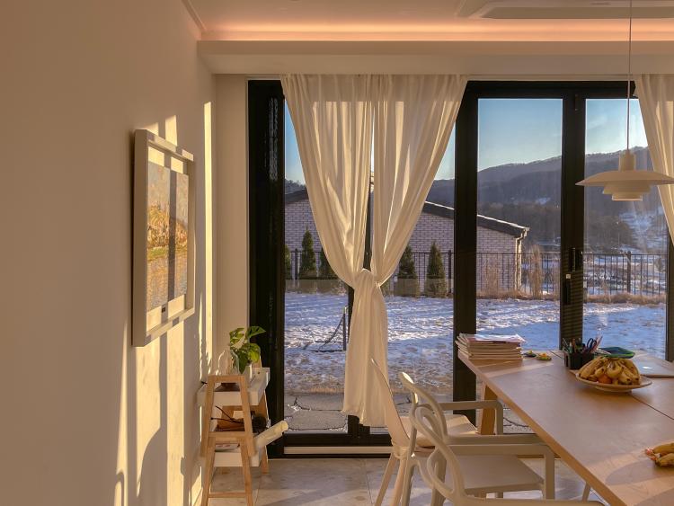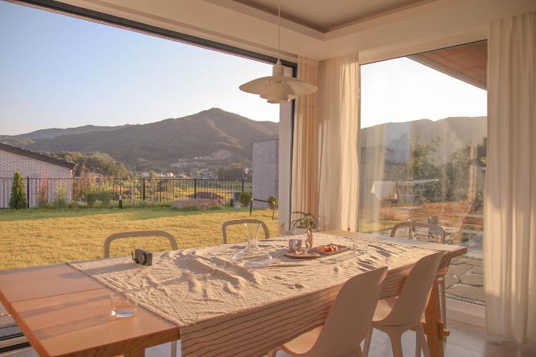 창문은 남쪽에 최대한 시원하고 크게 내고 싶었어요. 거실 창도 다이닝룸쪽도 최대한 크게 창문을 내어서 자연과 가까이하고 싶은 마음이었답니다.