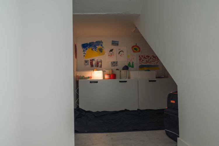 계단 밑의 공간은 아이들의 비밀스러운 작업실이에요. 장난감을 갖고 들어가서 놀기도 하고 종이접기를 하기도 합니다.