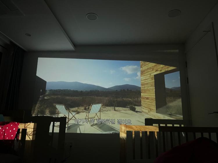주말에는 빔을 쏴서 침대에 누워 온 가족이 좋아하는 프로그램을 보기도 해요.
