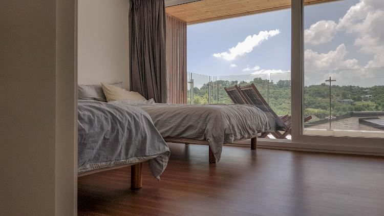 안방 침실에도 미니멀하게 침대 두 개만 두어서 오로지 쉼을 위한 공간으로 꾸몄어요.