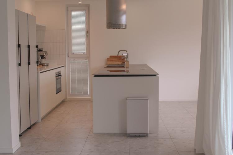 이사 오면서 가장 하고 싶었던 대면형 주방이에요. 카페 느낌의 주방 느낌을 주고 싶어서 냉장고도 새롭게 바꿔봤어요.