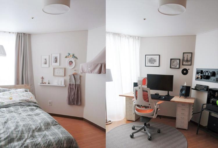 둘째가 두 살 정도 되니 바닥에서 다 같이 자기 시작하면서, 이번에는 침실이 사용이 안 되더군요. 1.5평 공간은 늘어난 아이들의 옷을 수납할 수 있는 드레스룸으로 바꾸고, 이곳을 다시 게임방 서재로 바꾸게 됩니다.