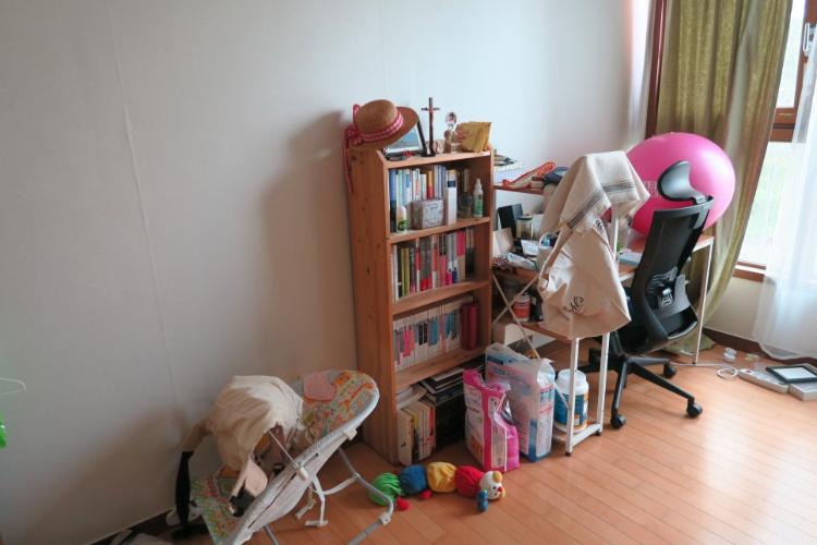 원래는 책상과 컴퓨터가 있던 서재 방이었어요. 아기방으로 꾸미려고 일단 비워두긴 했는데, 처음에는 누워만 있으니 놀이공간이 있는 아기방이 따로 필요가 없겠더라고요. 자연스레 창고가 되어버린 모습입니다.