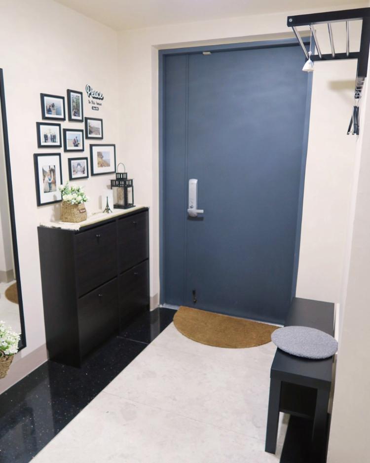 이케아에서 구입해 온 신발장과 소품들로 채워주었습니다. 신발장부터 작은 벤치, 거울과 액자 등 소품 전부까지 20만 원이 조금 안되는 비용으로 기억합니다.