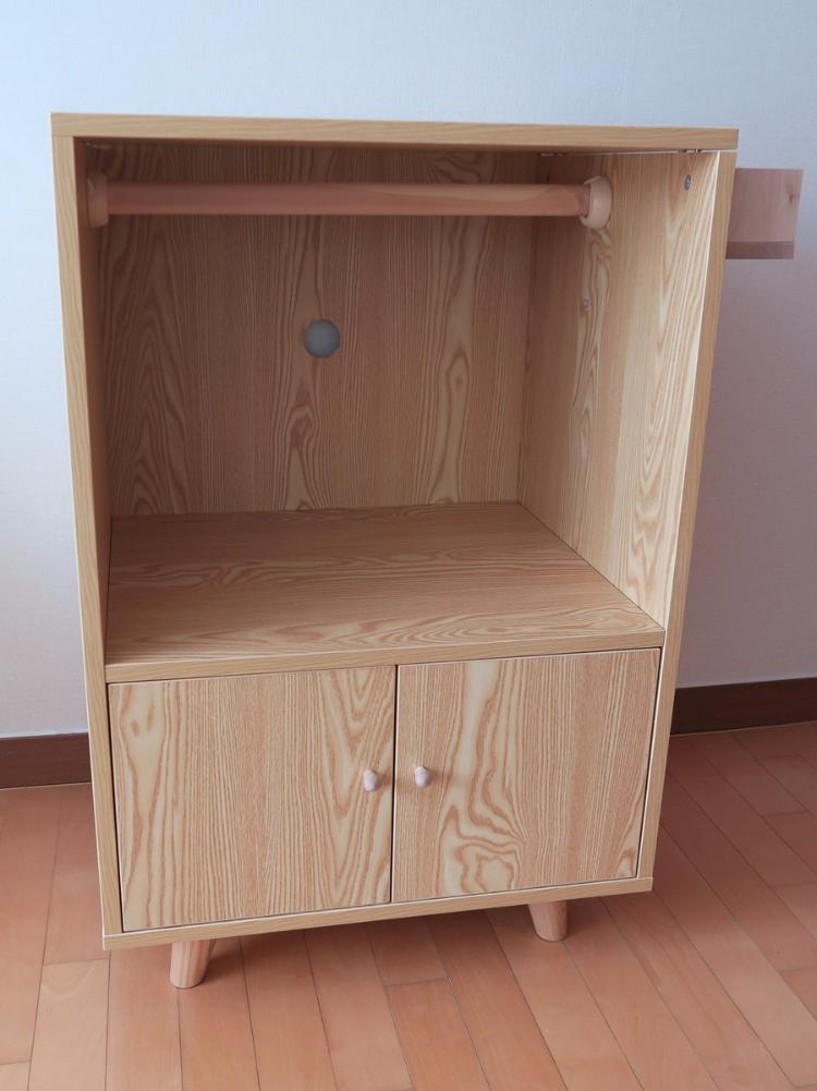 식탁 배치를 바꾸면서 갈 곳을 잃은 전자레인지장이에요. 아기 옷장으로 써보려다가 낮은 높이 때문에 그렇게도 잘 안돼서 결국 주방놀이가 되었습니다. 지금은 수도꼭지도 달고, 옆면에는 자석 판도 추가되었습니다.