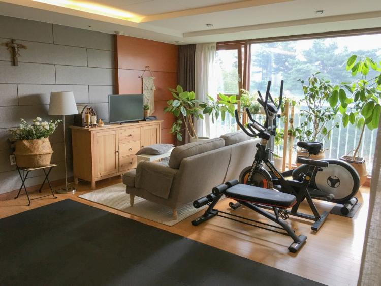 저세상 거실 배치 운동하며 게임까지 하겠다는 욕심이 담긴 실험적인 배치도 시도해 보았습니다.
