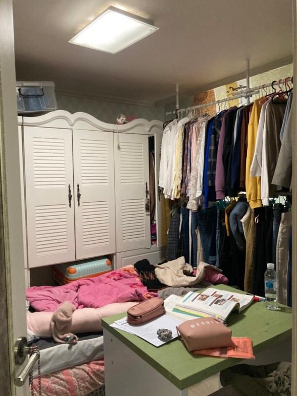 셀프 인테리어를 하기 전, 방의 before 사진입니다. 보기만 해도 막막해 보이시죠..? 2.7평의 좁은 방에 양 옆으로 행거, 옷장 3개, 침대(?), 책상, 그리고 사진에는 안 보이지만 아주 큰 책꽂이가 하나 더 있었습니다. 세 자매에 엄마 옷까지 일단 여자만 넷이라 옷이 정말 많아서 이 방을 창고 용도로 사용했었기에 이번 기회에 대학생 방에 맞게 실용적이고 깔끔하게 인테리어를 해보기로 했습니다.