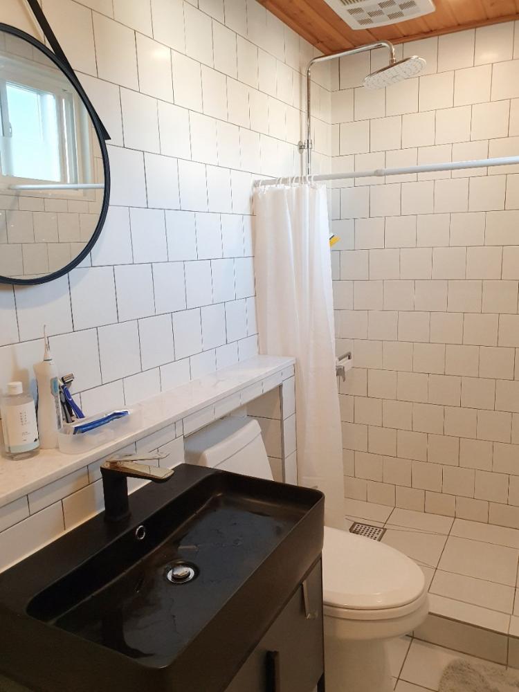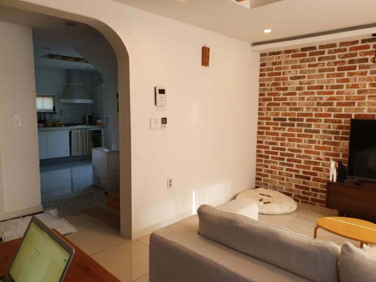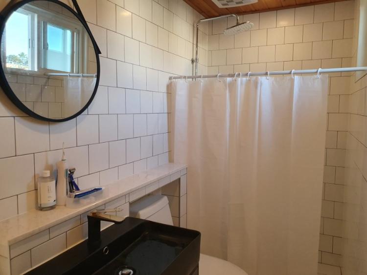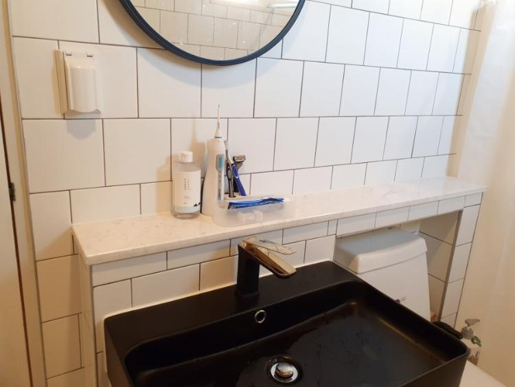 정말 실용주의, 인테리어 특별한 인테리어 포인트는 바로 조적을 이용한 건식 + 습식 공존이에요. 조적의 또 다른 용도는 강아지들 발 씻길 때 의자 대용!! (반려견 가족분들 추천)