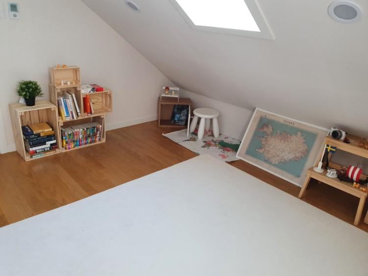 다락은 낮아서 더 특별해요. 책도 읽고 낮잠도 자는 하늘과 더 가까운 공간입니다.