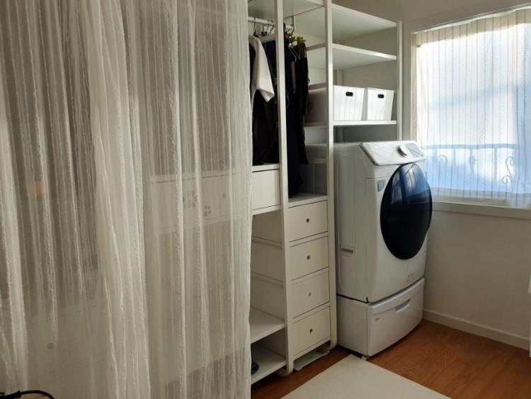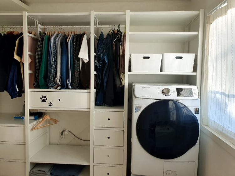 붙박이장 대신 시스템 장을 구성하고 건조기를 설치했어요. 아주아주 만족하고 있는 공간이랍니다.