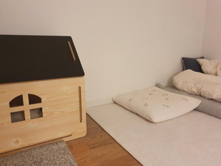 강아지도 자신만의 공간이 필요하다고 생각해요. 편하게 쉴 수 있도록 불빛은 따뜻한 색상으로ㅡ
