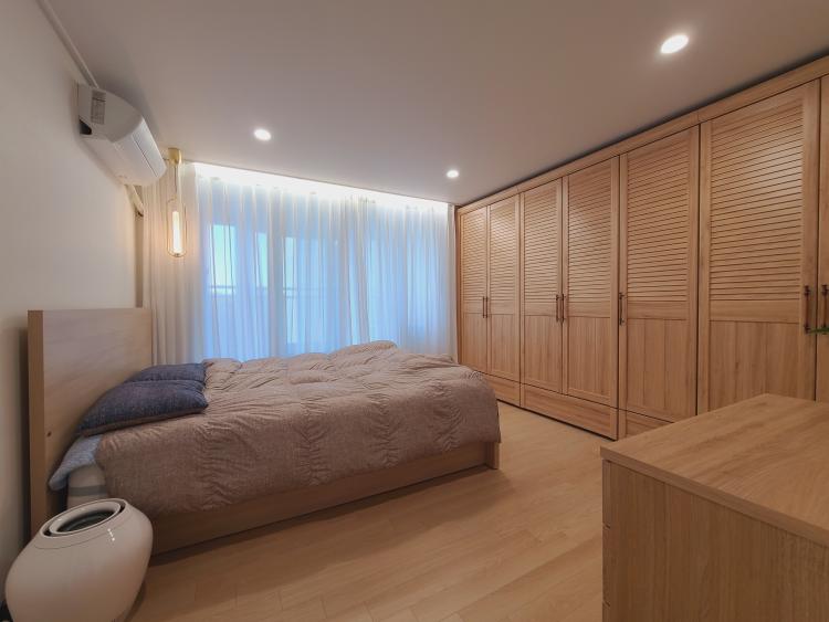 안방에는 조명을 3개나 시공했어요^^ 기본 메인 조명, 커튼레일 조명, 펜던트 조명 ㅎㅎ