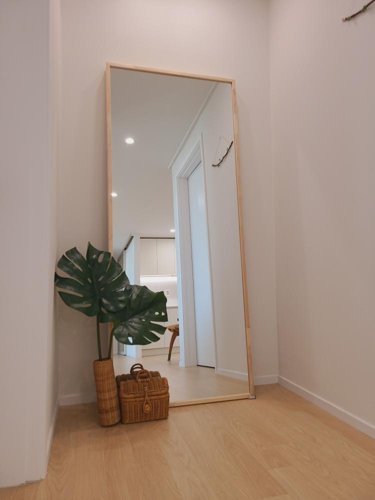 여기는 수납장을 짜넣거나 액자를 걸거나 하는 방식의 인테리어 사례가 많았는데 저는 전신거울을 놓아서 포토존으로 활용해보았어요^^