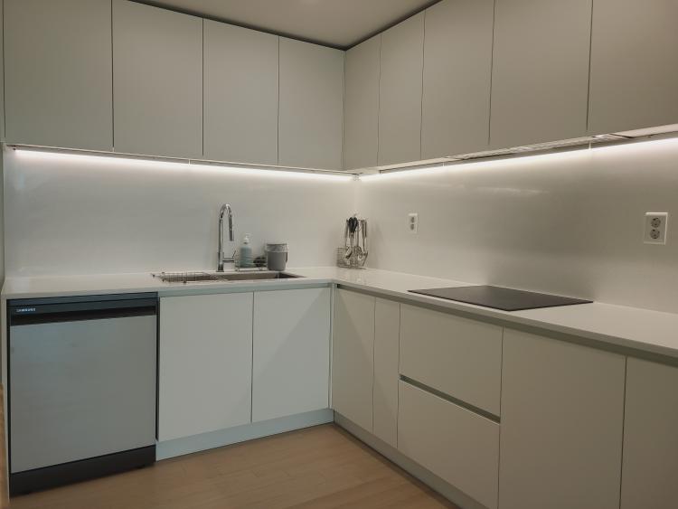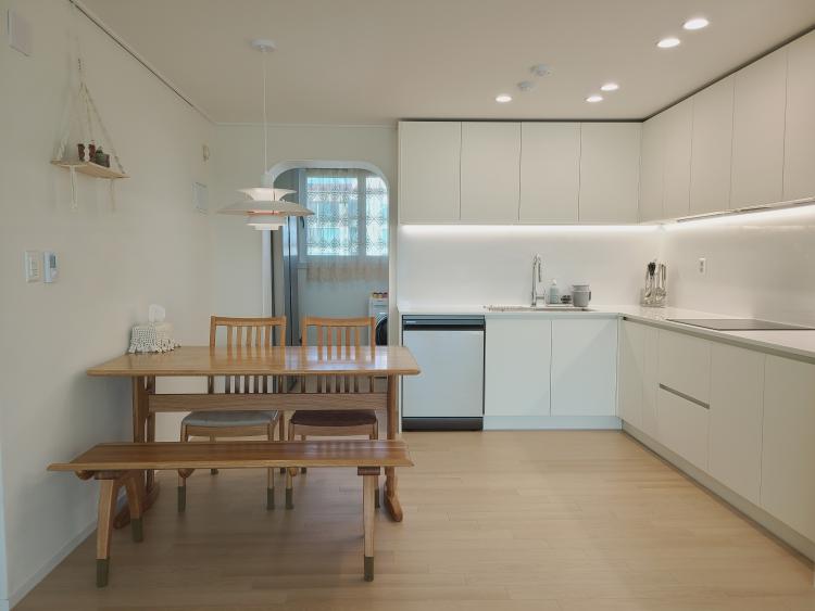 주방 인테리어를 할 때 가장 중요하게 생각한 것은 청소였어요. 아무래도 음식을 만들고 설거지를 하는 곳이다 보니 기름때 같은 것도 잘 끼고 청소를 조금만 게을리하면 티 나는 게 바로 요 주방이더라고요.