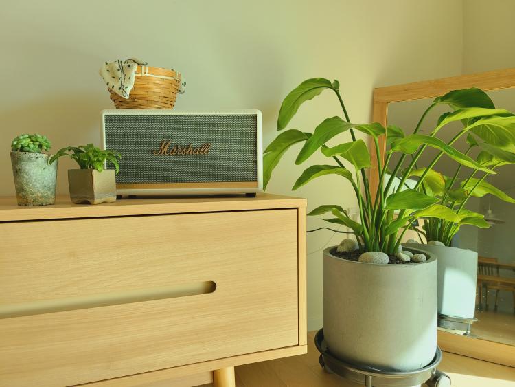 저희 집은 TV가 없는 거실이에요 그래서 거실 벽에는 예쁜 그림과 마크라메 월 행잉 그리고 스피커를 뒀어요.