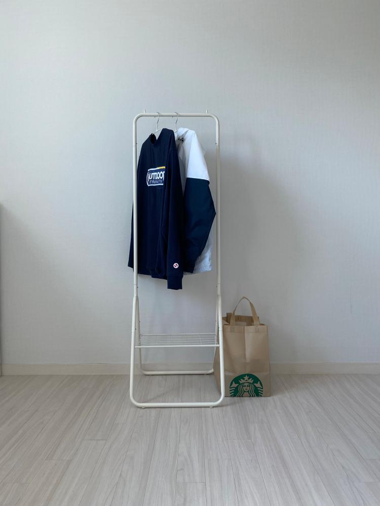 바로 입을 옷들은 별도로 구매한 작은 행거에 걸어서 보관해요. 옷이 많은 편이 아니라 큰 불편함을 느끼지 못하고 있습니다.
