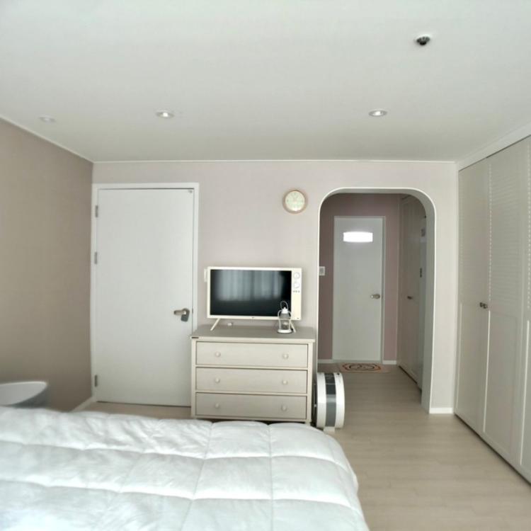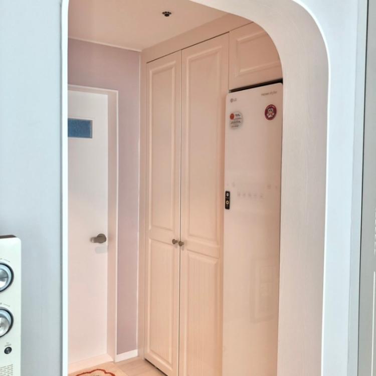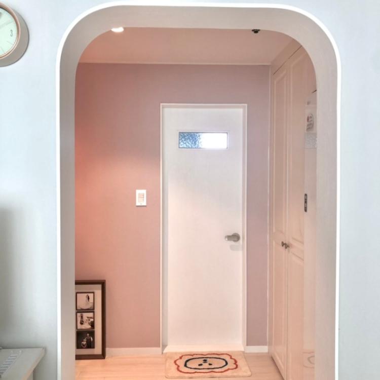 안방의 파우더룸으로 향하는 곳은 원래 슬라이딩문이 있었는데 아치형 통로로 바꿨더니 훨씬 방이 부드러운 느낌이에요. 파우더룸은 핑크색으로 도배하여 편안한 안방과 화사한 파우더룸이 더해져 예쁜 공간이 되었어요.