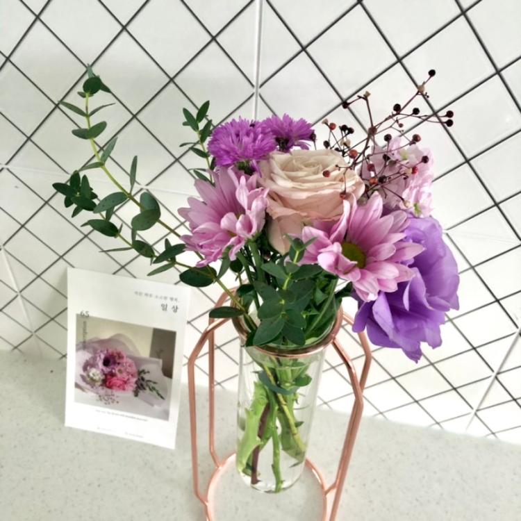 대신 밋밋한 느낌을 없애기 위해 로즈 골드 소품으로 포인트 주었답니다. 와인렉, 컵홀더, 키친타올걸이, 화병을 로즈 골드로 선택했어요. 도화지같이 하얀 화이트 주방은 어떤 소품으로 꾸미냐에 따라 또 다른 느낌을 줄 수 있는 것 같아요.