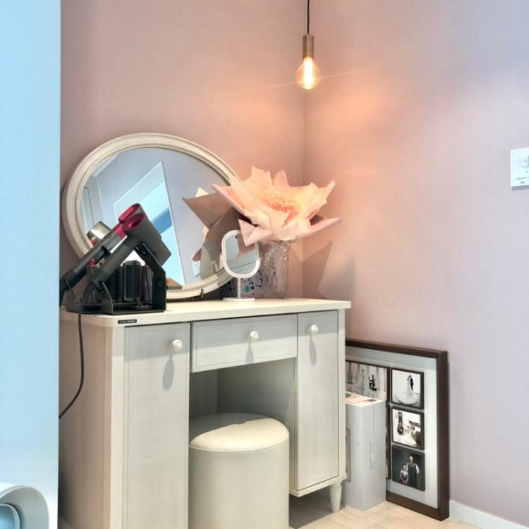 그리고 보통 인테리어 할 때 화장대는 붙박이 가구로 설치하지만 저는 결혼 당시 샀던 화장대를 놓았어요. 화장품이 밖으로 나오지 않아 깔끔함을 유지할 수 있는 이 화장대가 저에게 너무 익숙하고 편해서 쓰던 화장대를 놓고 쓰기로 했답니다.