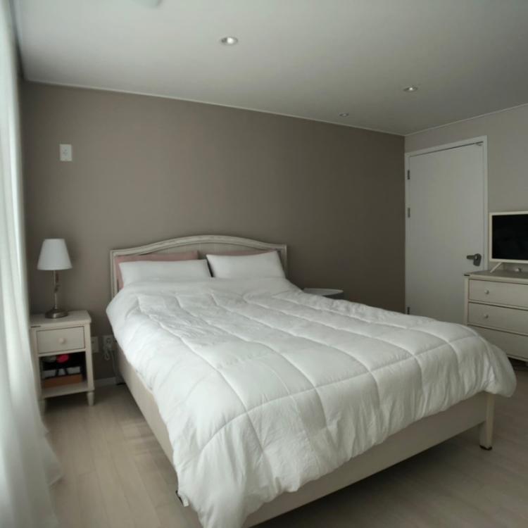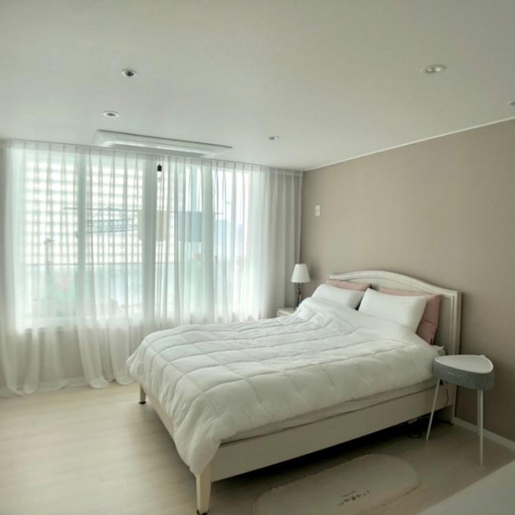 침실은 최대한 아늑하되 어둡지 않게 꾸미고 싶었어요. 그래서 속 커튼으로 사용되는 린넨커튼 하나만 달아 너무 밝지도 어둡지도 않은 조도를 유치하고 있답니다.
