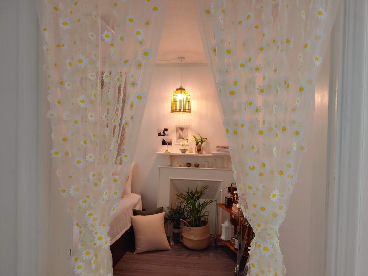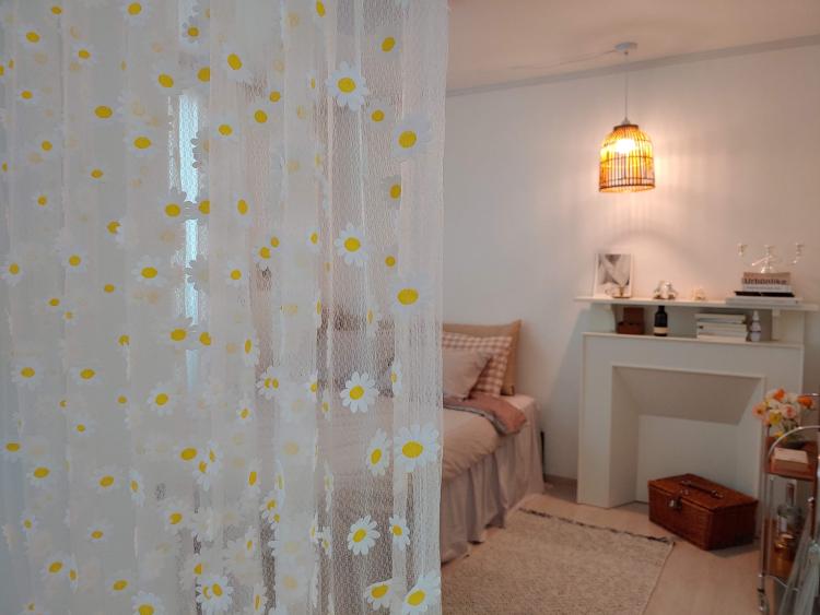 봄에는 러블리하고 로맨틱한 느낌으로 부드러운 색과 화사한 패브릭, 커튼으로 꾸며보았어요.