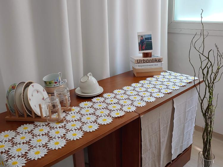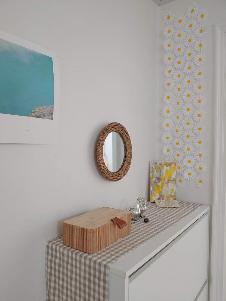 그리고 꽃을 두면 좋다던데, 매번 꽃을 관리하기가 어려워서 화사한 데이지 러너를 벽에 걸어 두었더니 볼 때마다 기분까지 밝아지는 것 같아요!