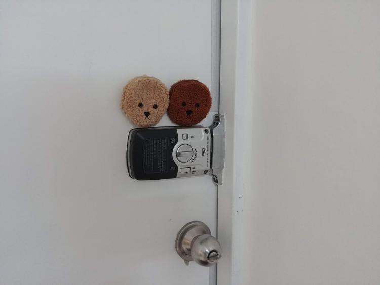 현관문엔 귀여움 가득한 푸들 2마리가 포인트로 달려있어요! 사실은 동전지갑인데 너무 작은 사이즈라 붙여두었더니 정말 귀엽죠? 인형이나 캐릭터를 별로 좋아하지 않아서 저희 집에선 유일하게 귀여운 구석이랍니다.
