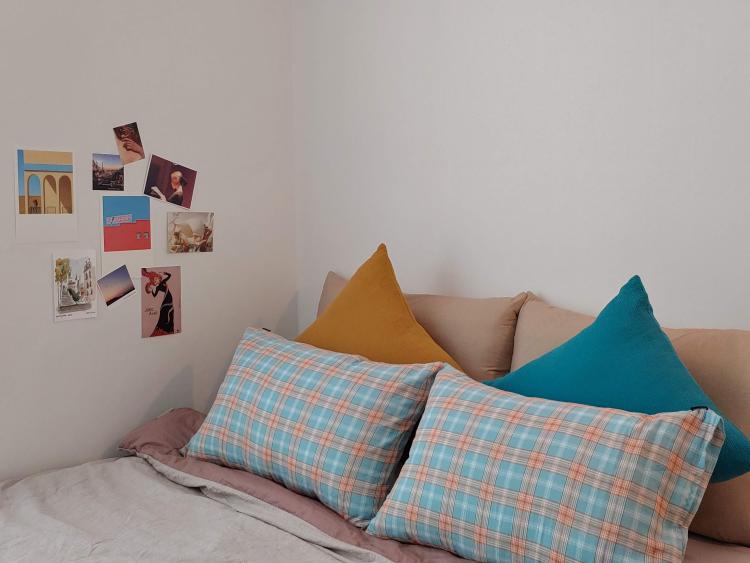 컬러를 입히면 또 다른 느낌이죠? 컬러를 제한한 베이지, 화이트 느낌이 방을 아늑하고 편안한 느낌으로 만들어준다면, 과감한 컬러가 포인트로 들어간 방은 활력과 에너지를 주는 것 같아요!