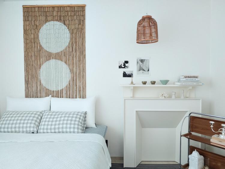 어두운 그레이컬러의 대자리로 분위기를 잡아준 뒤, 화이트와 우드 컬러만을 사용했더니 차분하면서도 시원한 느낌을 주더라고요.
