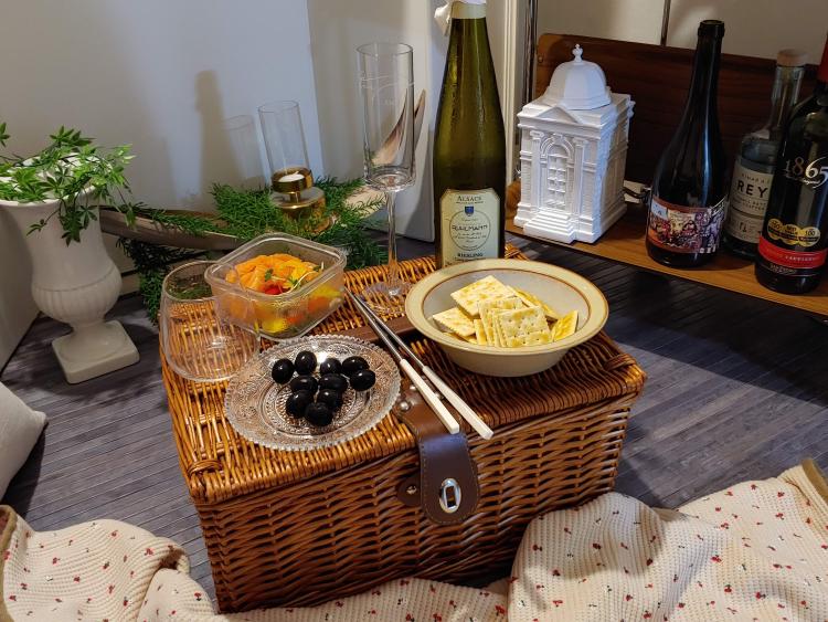 사실 별것 아닌 안 주고, 쪼그려 앉아 마시는 와인이지만 숲 속에 오두막에 놀러 온 것 같다며 낭만적이라 포장하는 것도 즐거운 기억이 되는 것 같아요. 이 맛 때문에 한동안 매일매일 와인을 마셔댔던 기억이 나네요 ㅎㅎ
