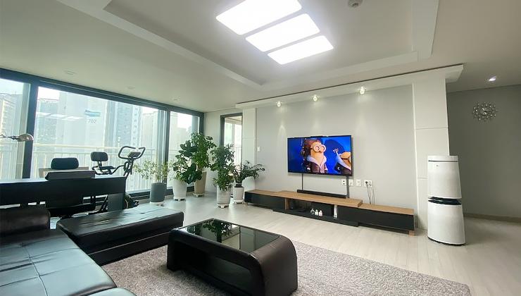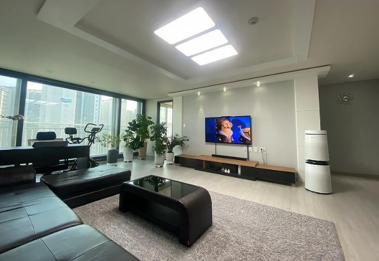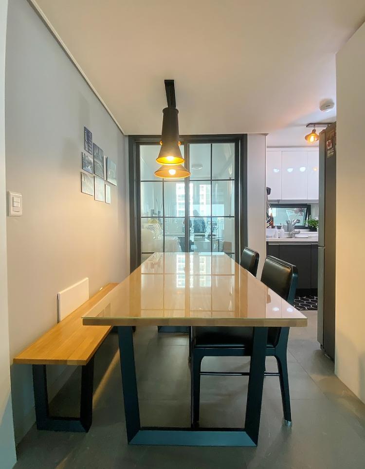 베란다가 넓은 구조라 확장되어 있는 집을 매매했고 거실과 주방의 내력벽으로 대면형 주방구조가 되지 않아 스타일링으로 넓게 보이고자 했어요.