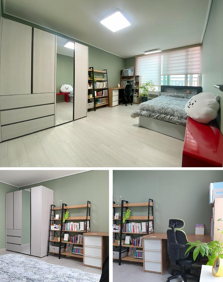 딸의 로망이었던 벙커 침대를 두어 공간 활용을 높일 수 있었네요.