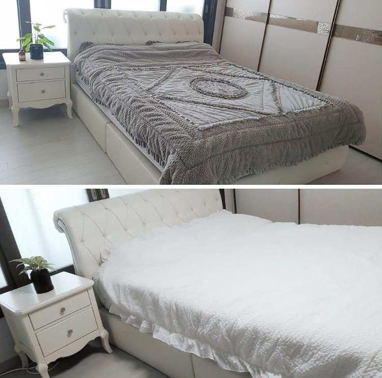 계절마다 침구를 교체하고 있어요. 여름엔 화이트로 겨울엔 그레이로 교체하죠~