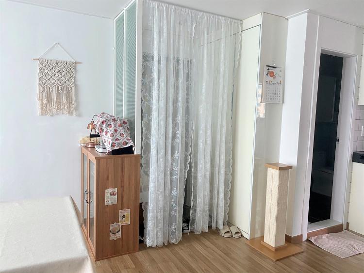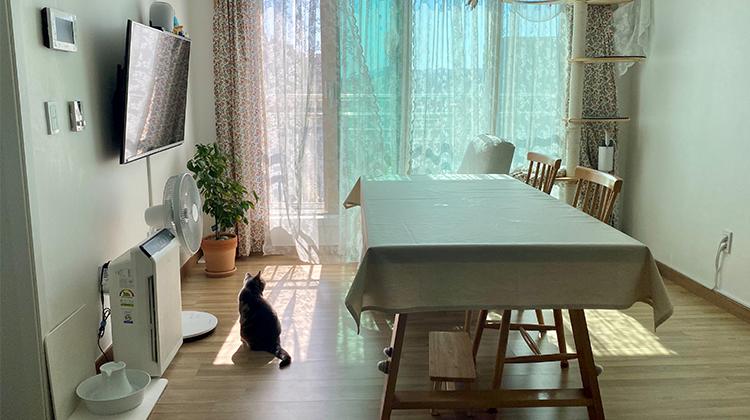 하루 종일 집에 있는 고양이들이 너무 심심할 것 같아서 이번 집은 남향에 거실에는 큰 창이 있고, 4층 이상인 곳으로 알아봤어요. 마음에 드는 곳이 없어서 거의 20곳 이상은 봤던 것 같아요. 그러다가 이 집을 발견했는데 채광도 좋고, 앞에 막히는 것 없이 탁 트여 있더라고요. 그리고 방, 베란다, 욕실, 거실 크기가 적당히 잘 나누어져 있었고, 구조도 마음에 들어서 집 보러 간 날 바로 계약을 했어요.