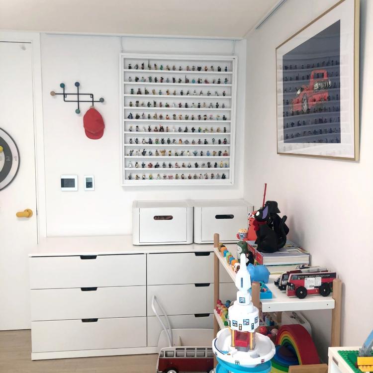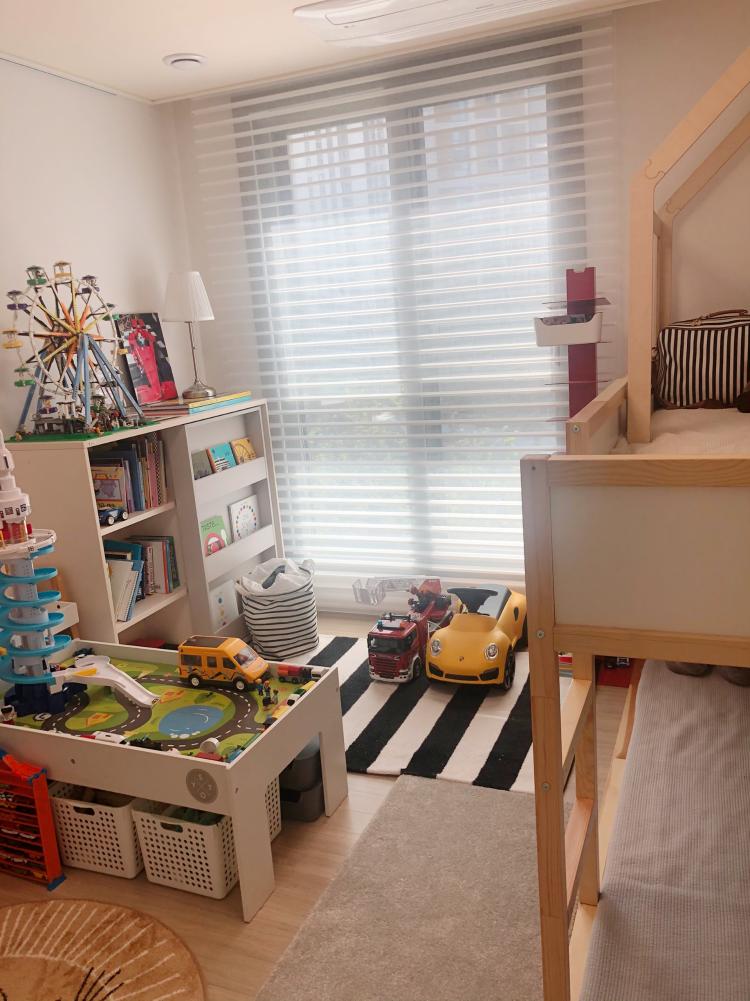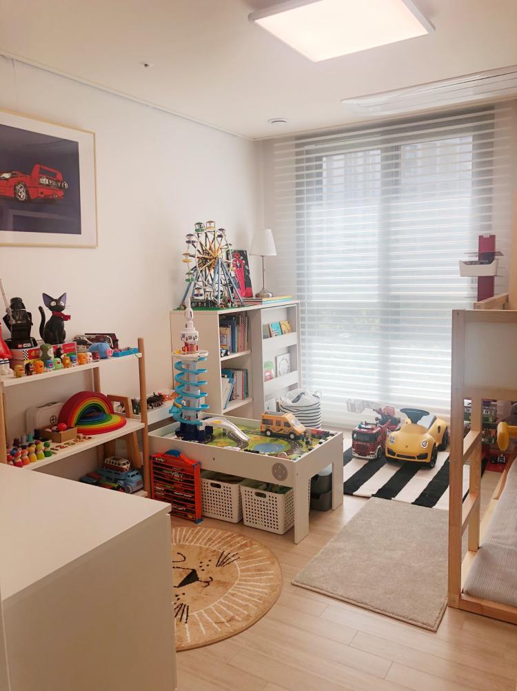 장난감을 모두 아이 방에 정리해서 놀이방으로 사용하고 있습니다. 덕분에 거실이 깨끗해져서 너무 쾌적해요 ㅎㅎ 장난감이 정말 많아서 미니멀한 인테리어는 한계가 있어 최대한 현실과 타협했네요^^