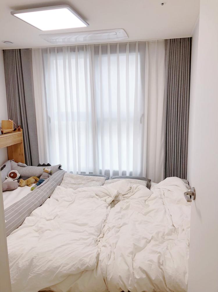 가장 작은방을 가족 침실로 정하고 보니 퀸퀸매트리스 두 개가 딱 들어가는 사이즈였네요. 별다른 인테리어는 없고 오직 침대뿐 ㅎ 온 가족이 굴러다니면서 편안하게 잠드는 침대방입니다^^