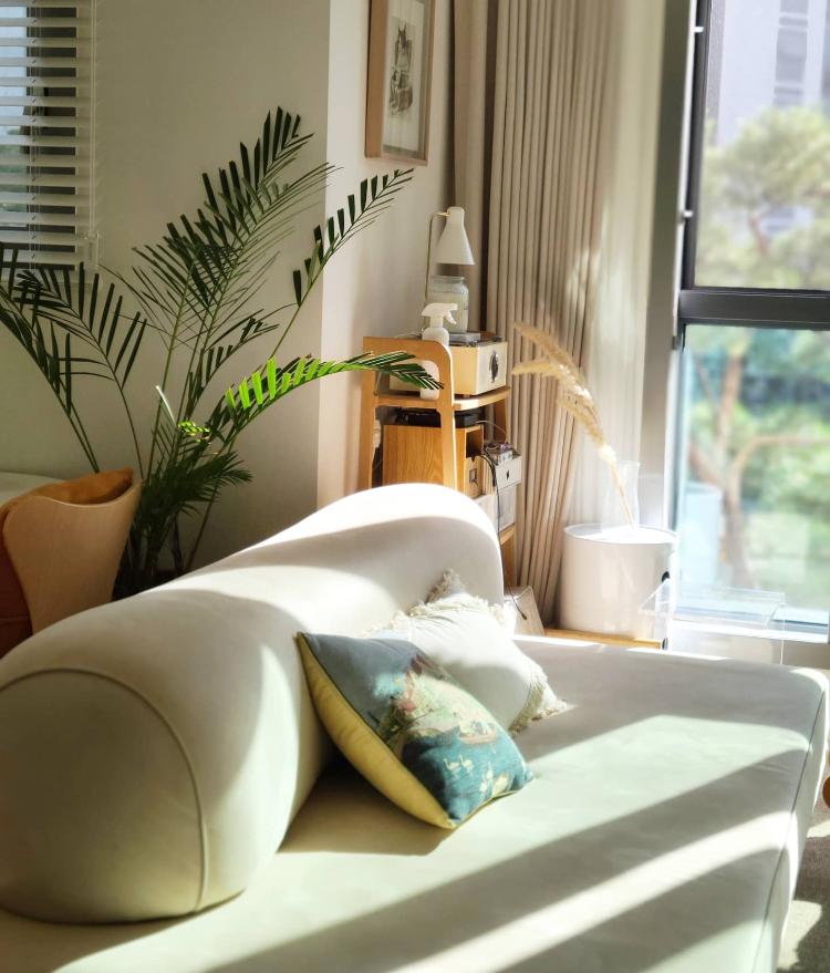 제가 가장 애정 하는 포근한 느낌의 거실입니다. 베란다가 없어서 좁긴 하지만 햇빛이 깊숙이 들어와서 너무 좋아요^^