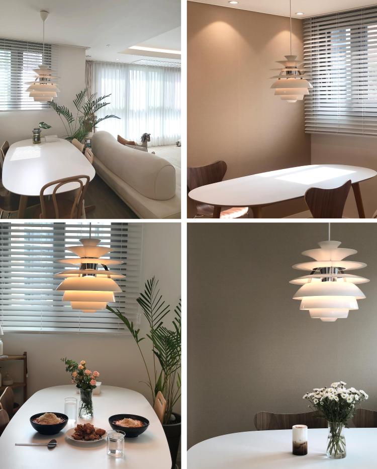 소파 뒤쪽엔 식탁공간이 있어요:) 직구로 구한 루이스폴센 스노우볼로 분위기 up!