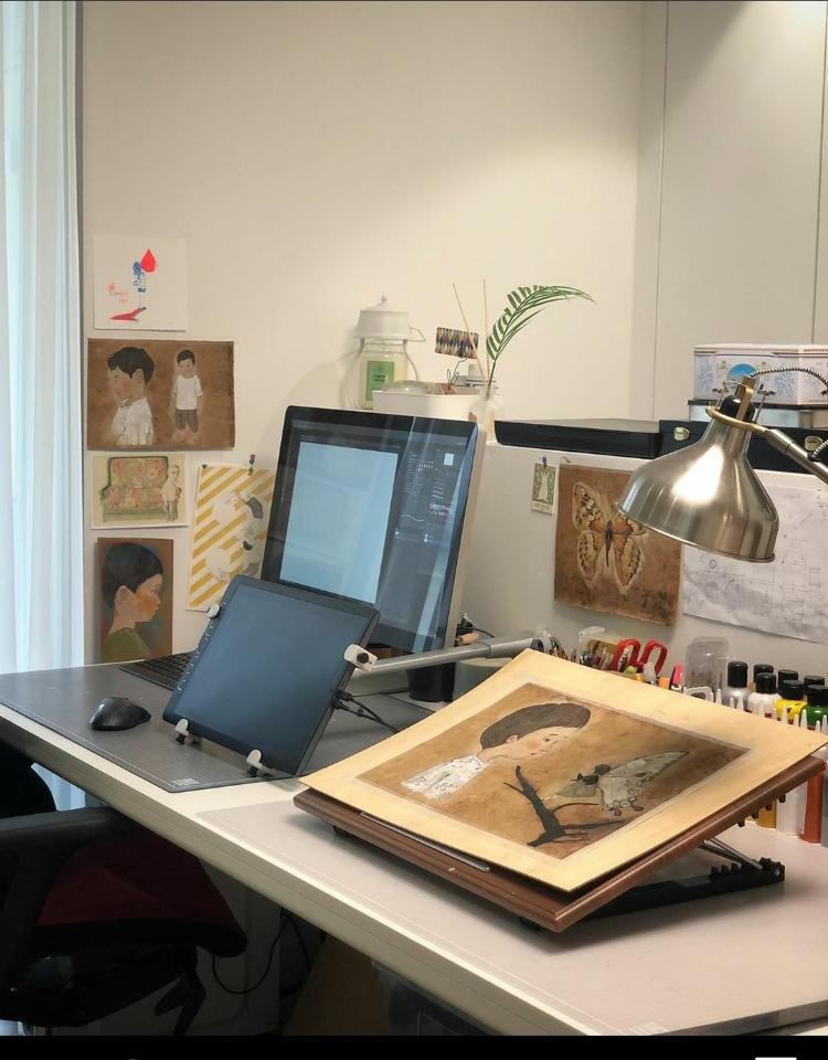 이사를 하며 작업실을 정리하는 바람에 작업 공간을 어떻게 할지 정말 고민하다가 가장 큰 방을 작업실 겸 신랑 서재로 꾸몄습니다.