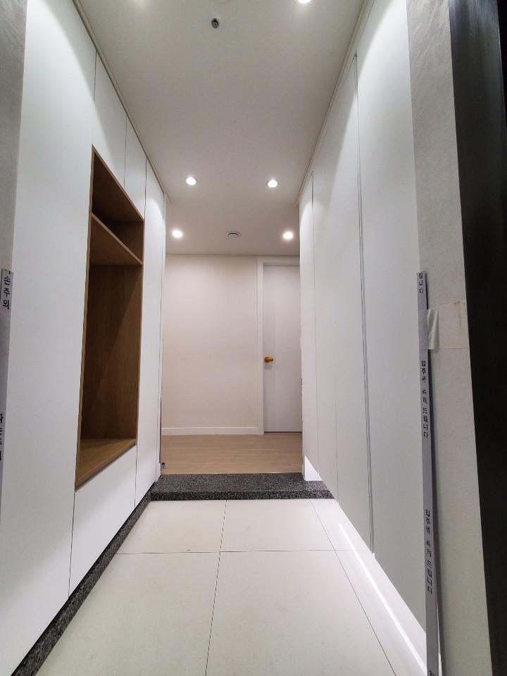 신발장은 조금 어두워서 기존장 한쪽은 화이트로 필름시공만 하였고 나머지 한쪽은 철거후 가운데 벤치장을 만들어서 새로 설치했습니다.