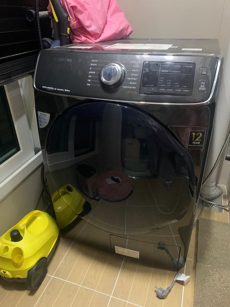 다용도 실-삼성 세탁기 쓰고 있습니다. 근데 건조기를 나중에 구입해서 위에 공간이 올라가지지 않는다고 하셔서 건조기는 안방 베란다로 뺐습니다.