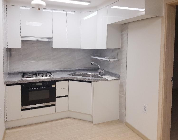 싱크대와 냉장고 사이에는 밥솥 장을 두어 싱크대가 더 넓어 보일 수 있도록 하고 조리 및 수납공간 확보를 위해 트롤리도 놔주었어요