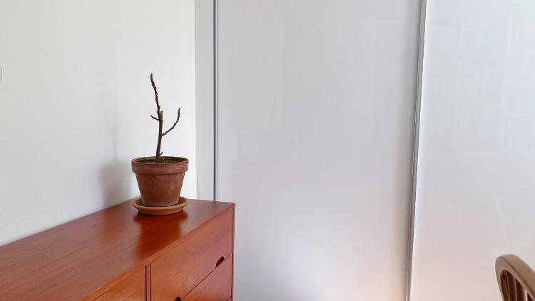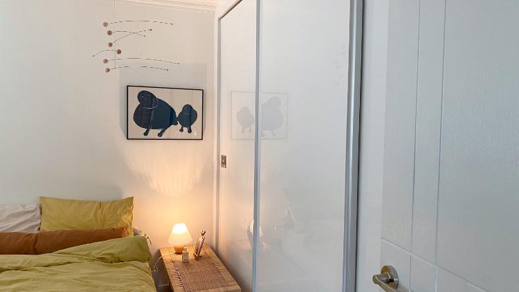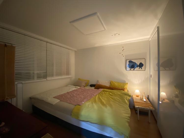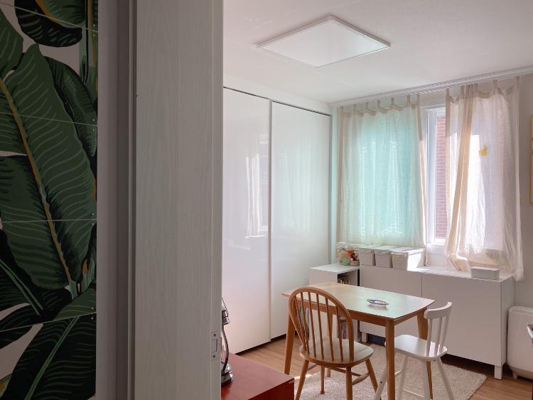 이 방에도 붙박이장을 추가했어요. 방이 넓은데 붙박이장으로 공간을 차지하는 것이 걱정되어 그대로 사용할까도 고민했지만, 세 식구의 사계절의 옷과 이불을 다 보관하기 위해서는 붙박이장이 필요하다고 판단되어 추가하였습니다. 그렇게 총 두 개의 붙박이장이 저희 집에 있습니다. 이곳에는 아빠의 옷과 계절 옷을 보관하고 있어요. 방이 2개뿐이라 각자의 방은 없지만 방마다 모두가 함께 할 수 있도록 꾸몄습니다.