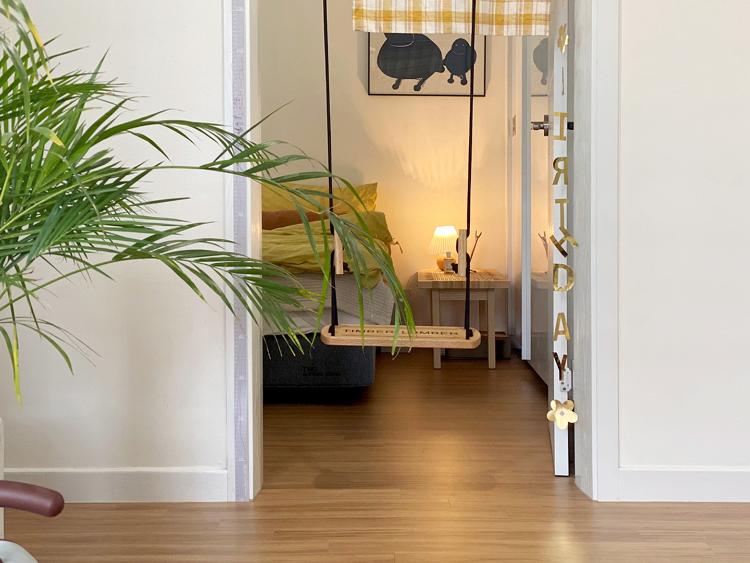 침실 입구에는 그네를 설치했어요. 작년 가을쯤 미세먼지가 너무 심해 밖에서 놀지 못하는 아이를 위해 집에 설치해 주었죠. 기본 놀이터에서 2시간은 놀아야 하는 아이인데 요즘은 너무 안쓰럽네요