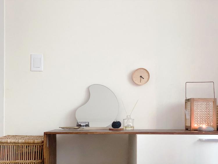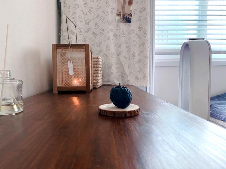 기존 수납장 위에 원목을 구매하여 직접 만든 테이블입니다. 어려운 작업은 아니었지만, 그래도 애착이 가는 공간이 되었어요. 이곳은 간이 테이블, 화장대로 사용하고 있어요.