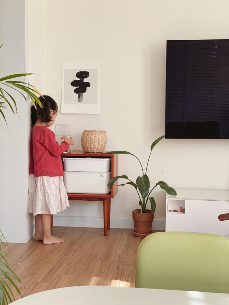 거실의 마지막 공간은 아이의 보드게임과 블럭 그리고, 한 달 전 동생이 된 물고기 베타가 있습니다. 아침, 저녁으로 베타 식사는 아이의 몫이지요.