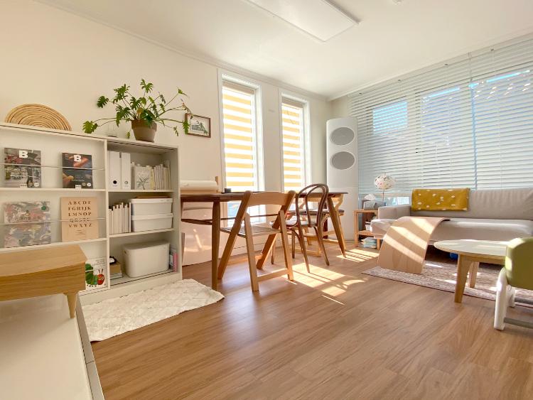 작은방은 사람이 있어서 비포 사진이 없어요. 놀이방은 저희 집에서 빛이 가장 많이 드는 공간입니다. 불을 키지 않아도 낮 동안은 이렇게 밝아요.