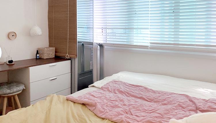 침실은 기존에 없던 붙박이장을 추가하고, 에어컨을 벽에 설치했어요. (물 빠지는 건 꼭 있어야 한다더군요)