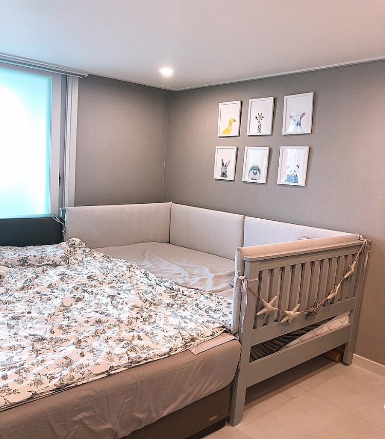 아이침대와 부부침대를 연결해서 침대만 두고 사용하니 아늑한 침실이 되었어요.